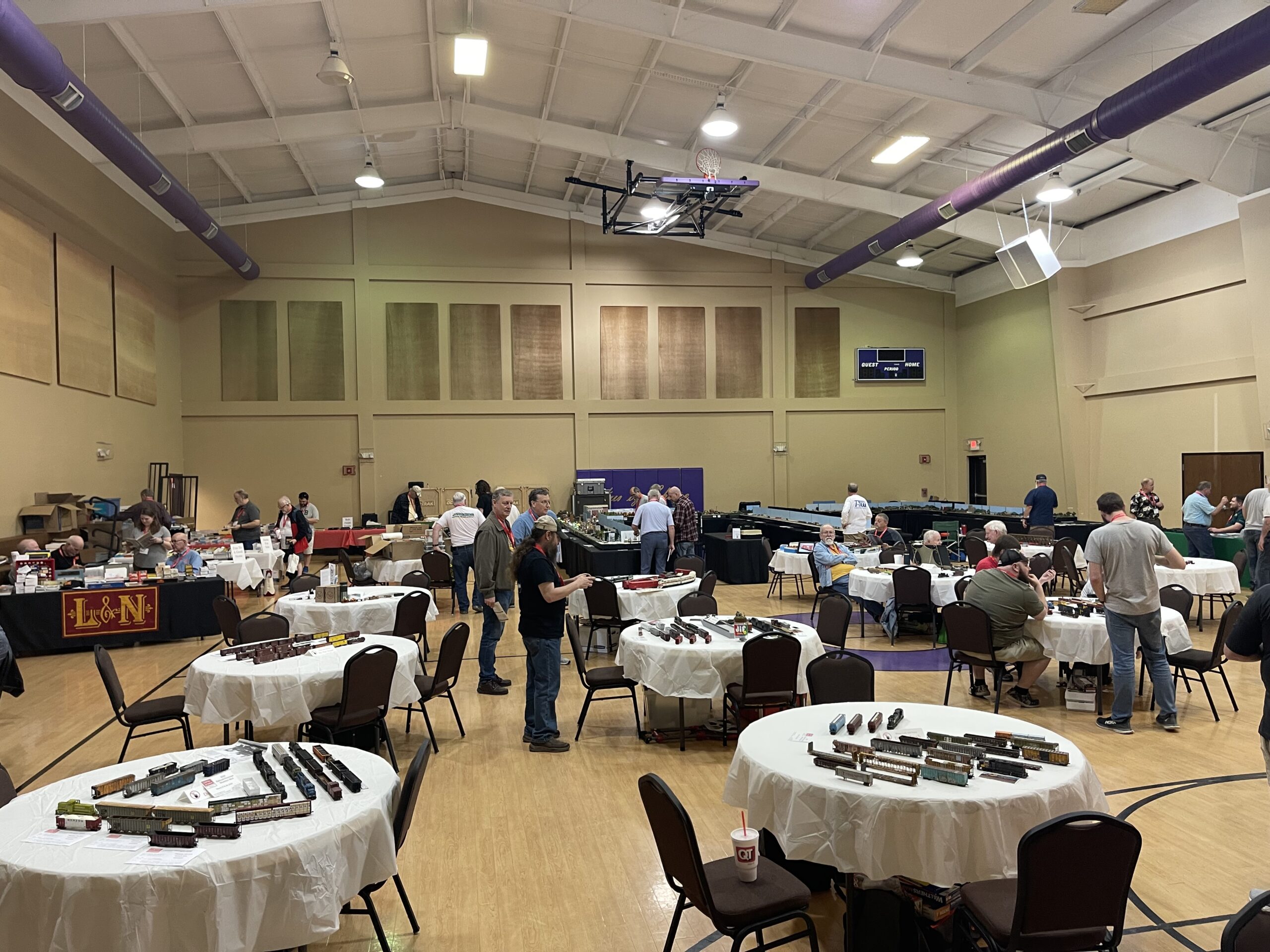 We have the full gym for the model display area, historical societies, and vendor space, plus a separate clinic room with state of the art A/V – and padded chairs!